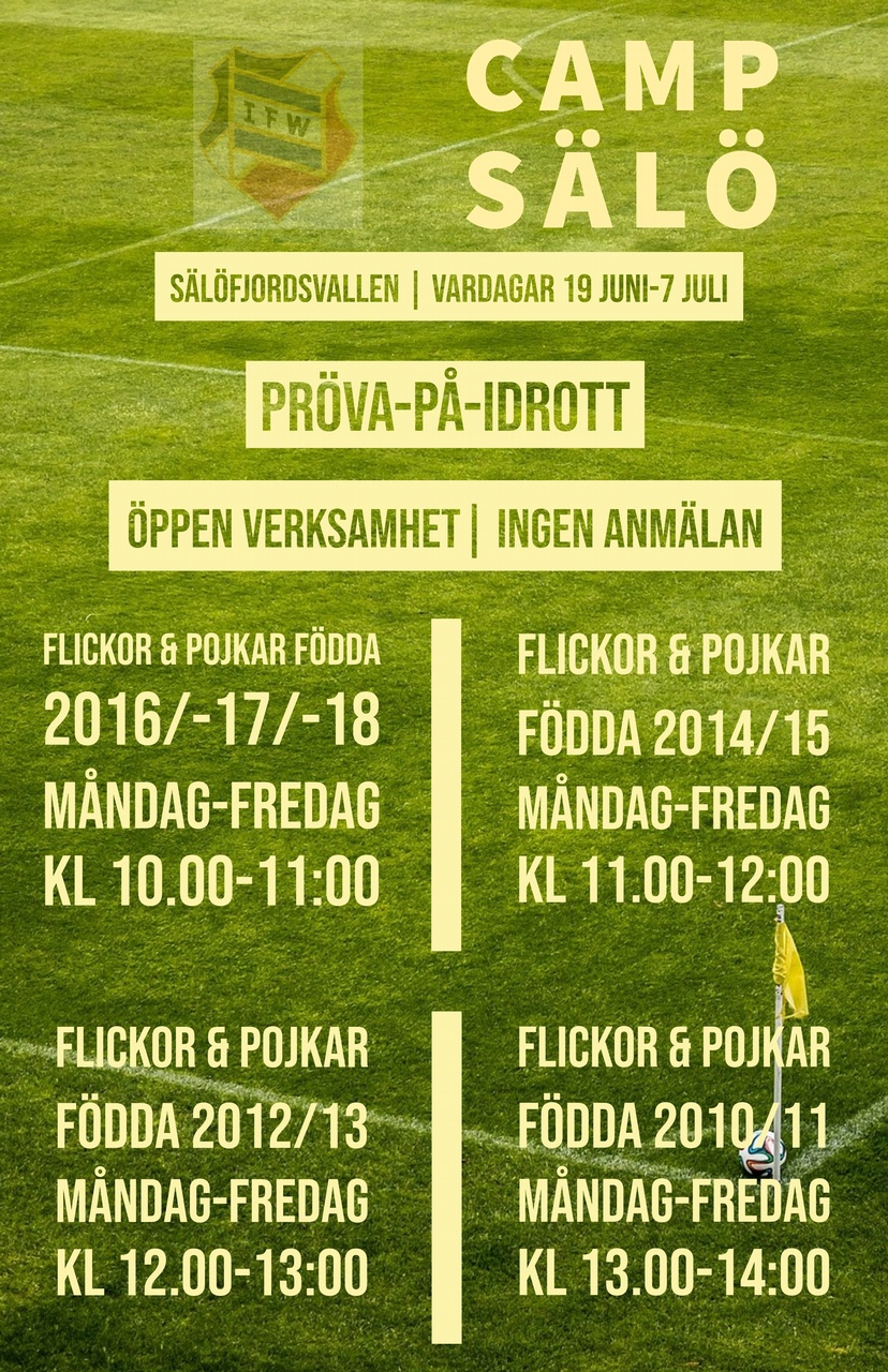 Under sommarveckorna v.25, v.26 och v.27 håller IF Warta öppna och gratis aktiviteter på Sälöfjordsvallen för barn i åldersgrupperna 2018-2010. Ingen anmälan krävs, det är bara att komma förbi och vara med! Notera dock att inga aktiviteter hålls under midsommar, fredag 23 juni.